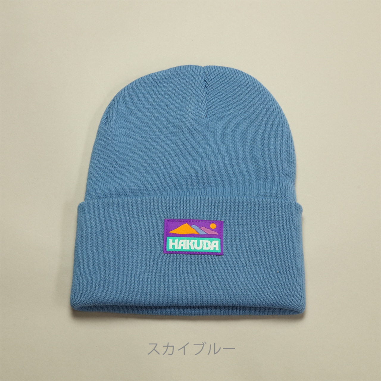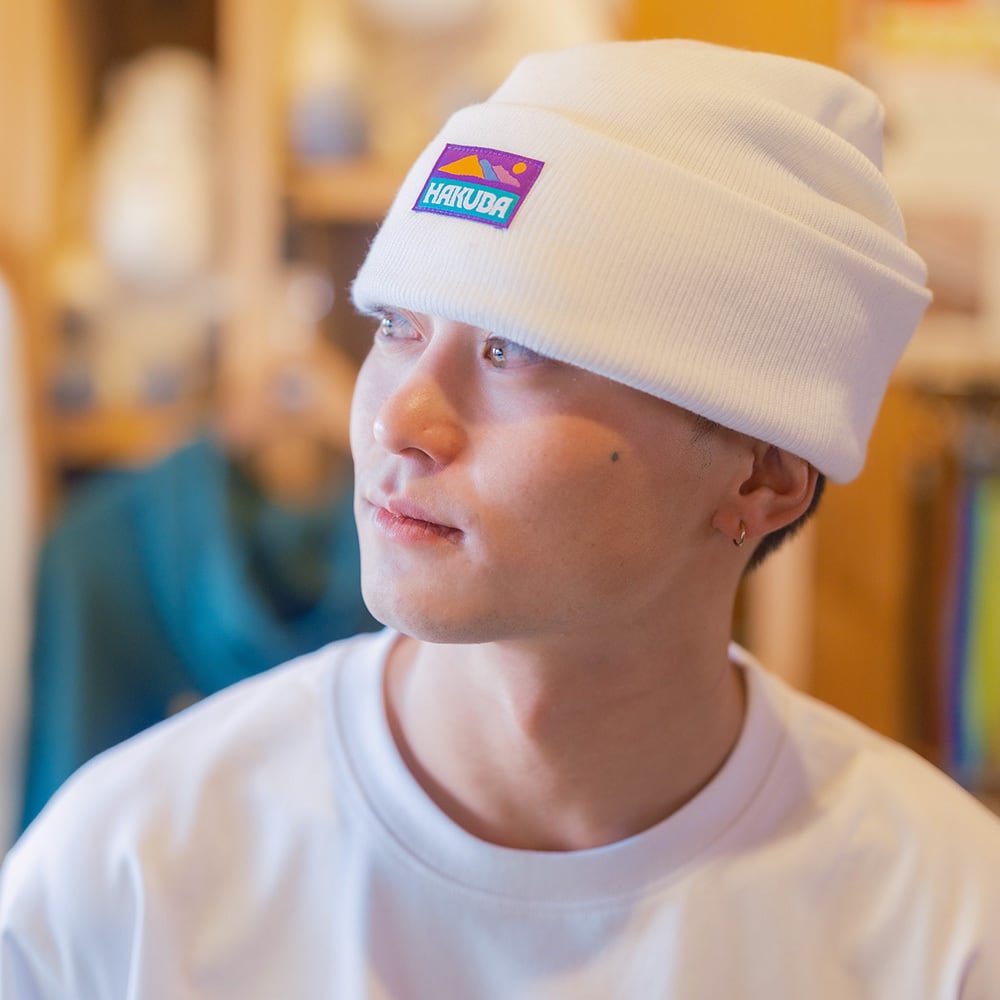 素材:軽量で伸縮性に優れたアクリル素材、保温性と通気性も兼ね備えています。シンプルながら、独自の紫タグがアクセントとなっており、どんなスタイルにも合わせやすくなっています。