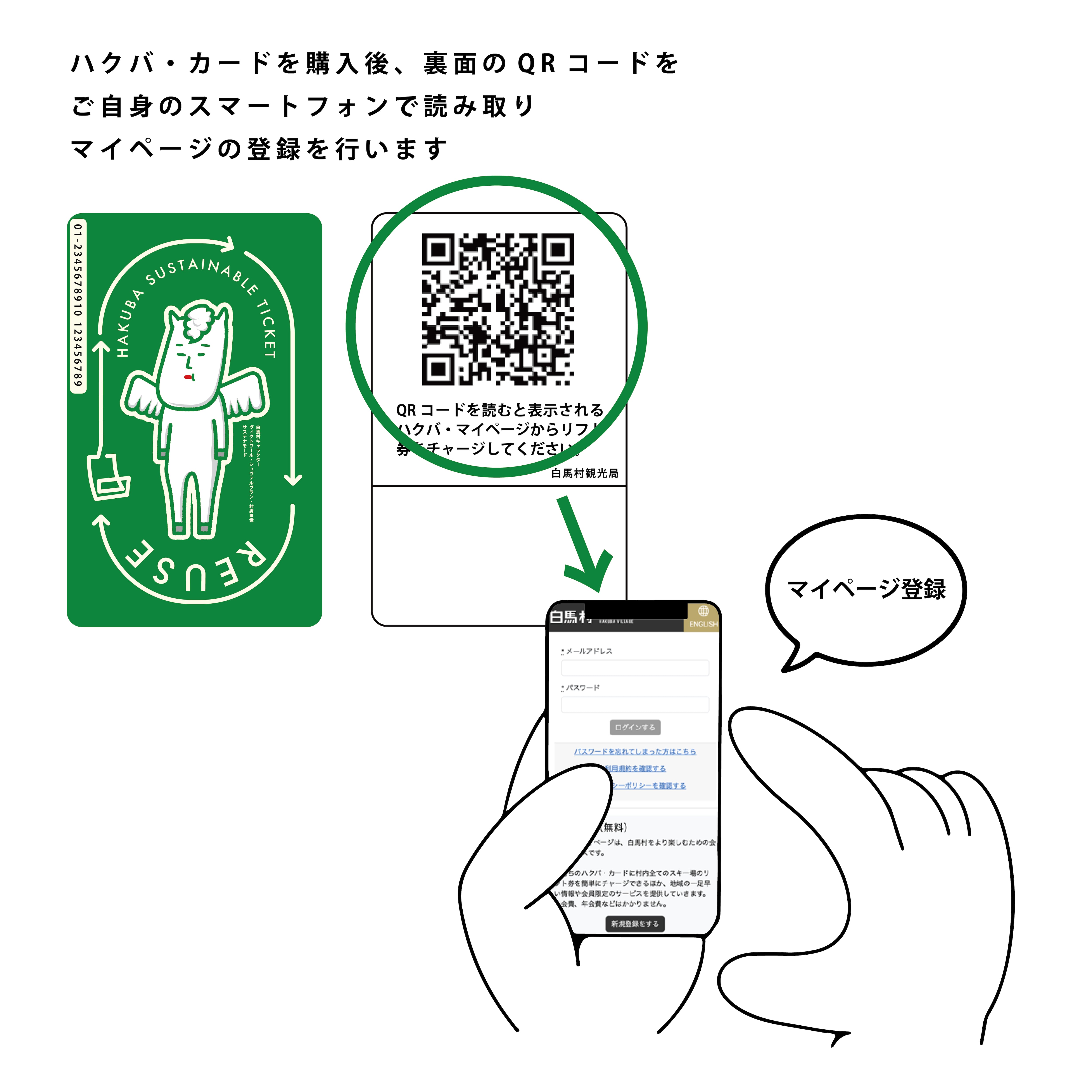 (1) Open "Hakuba Village My Page" by scanning the two-dimensional code on the back of the card with your smartphone.