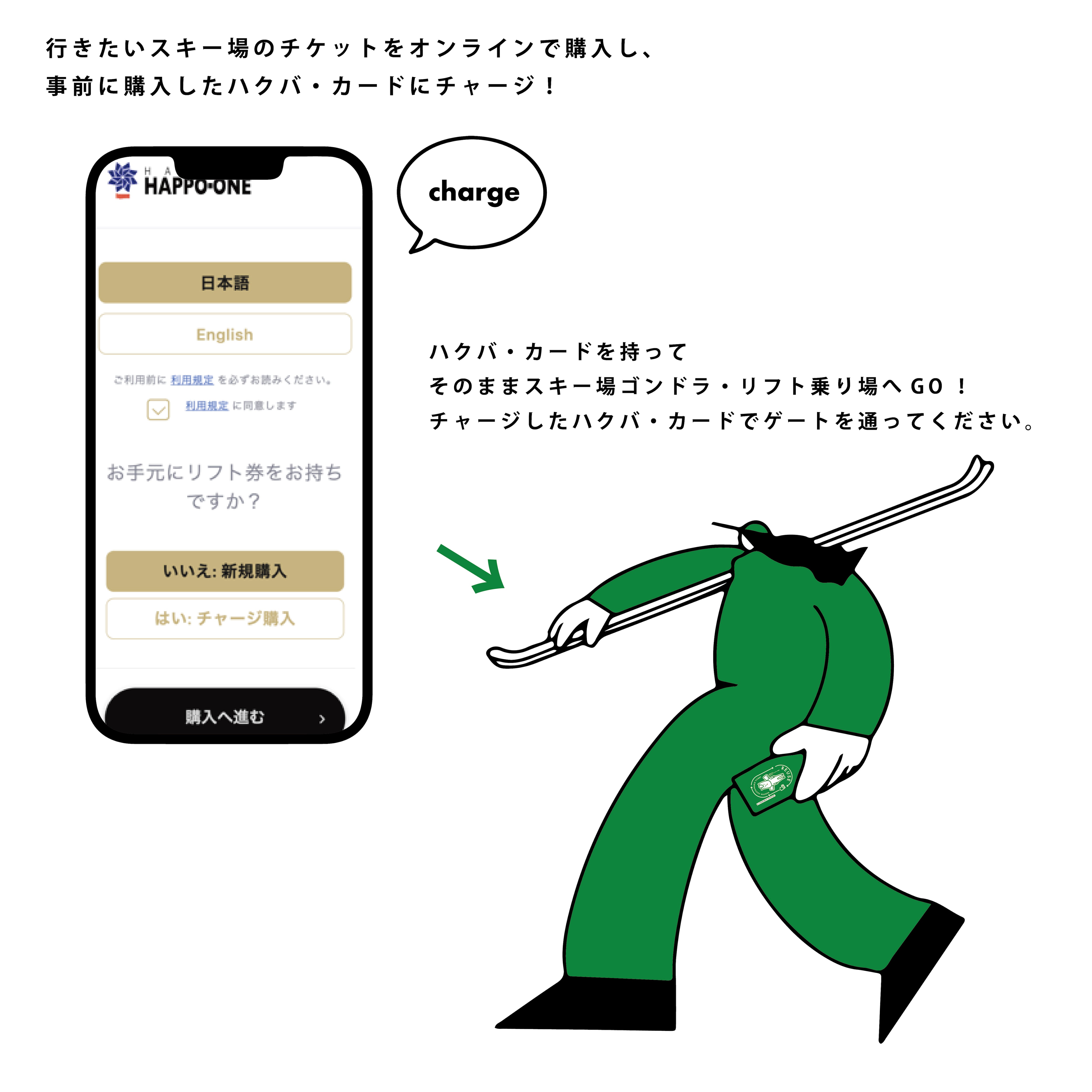 ⚫︎スキー場の窓口ではハクバカードへのチャージはできません。必ず、マイページからチャージしてください