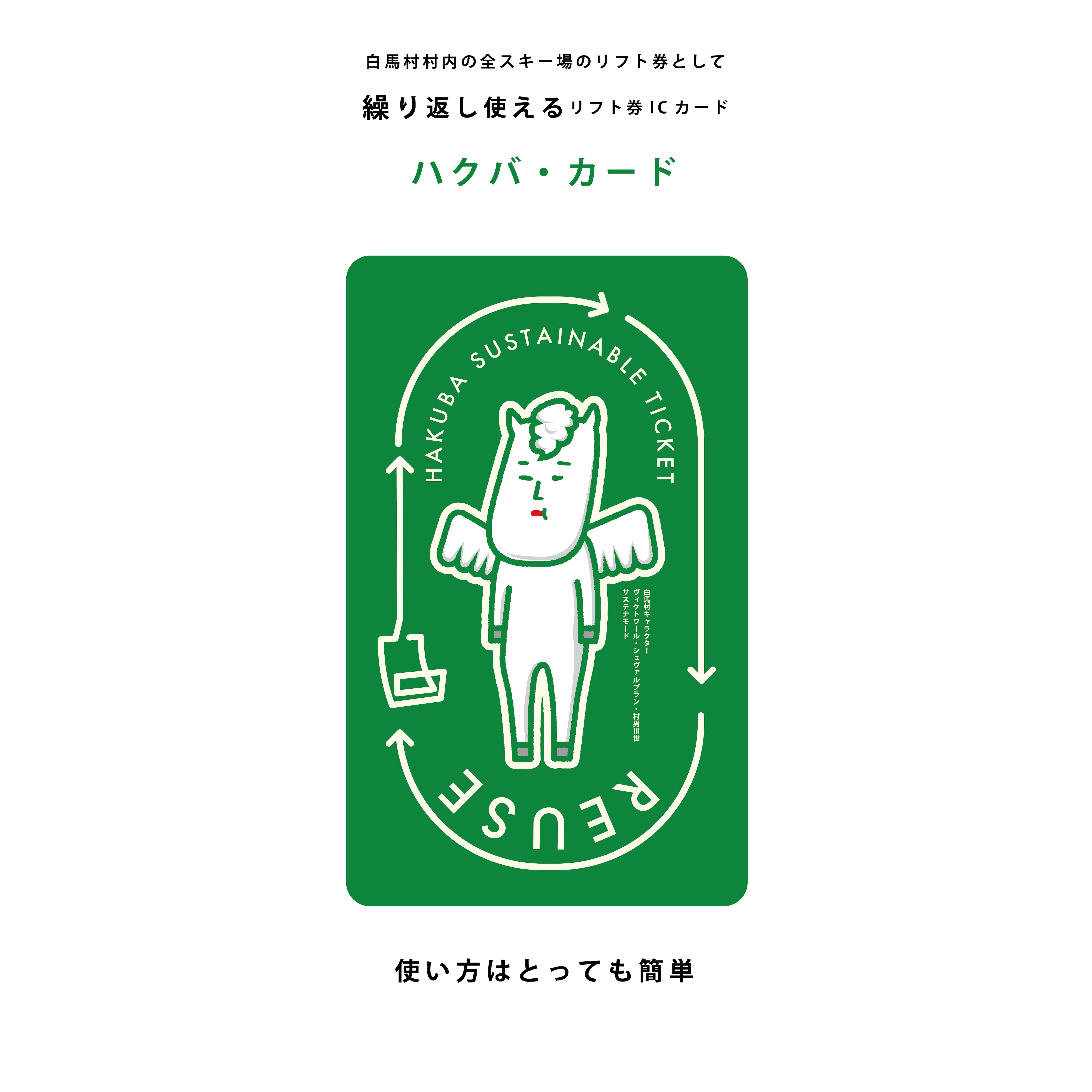 Many lift tickets are discarded within Hakuba Village. By repeatedly recharging your Hakuba Card and using it as a lift ticket, you can help Hakuba Village's sustainability efforts!