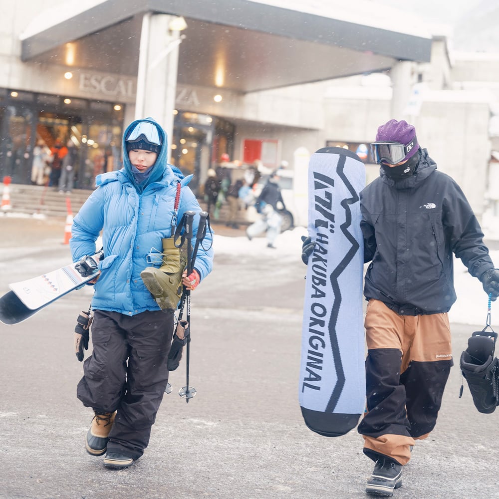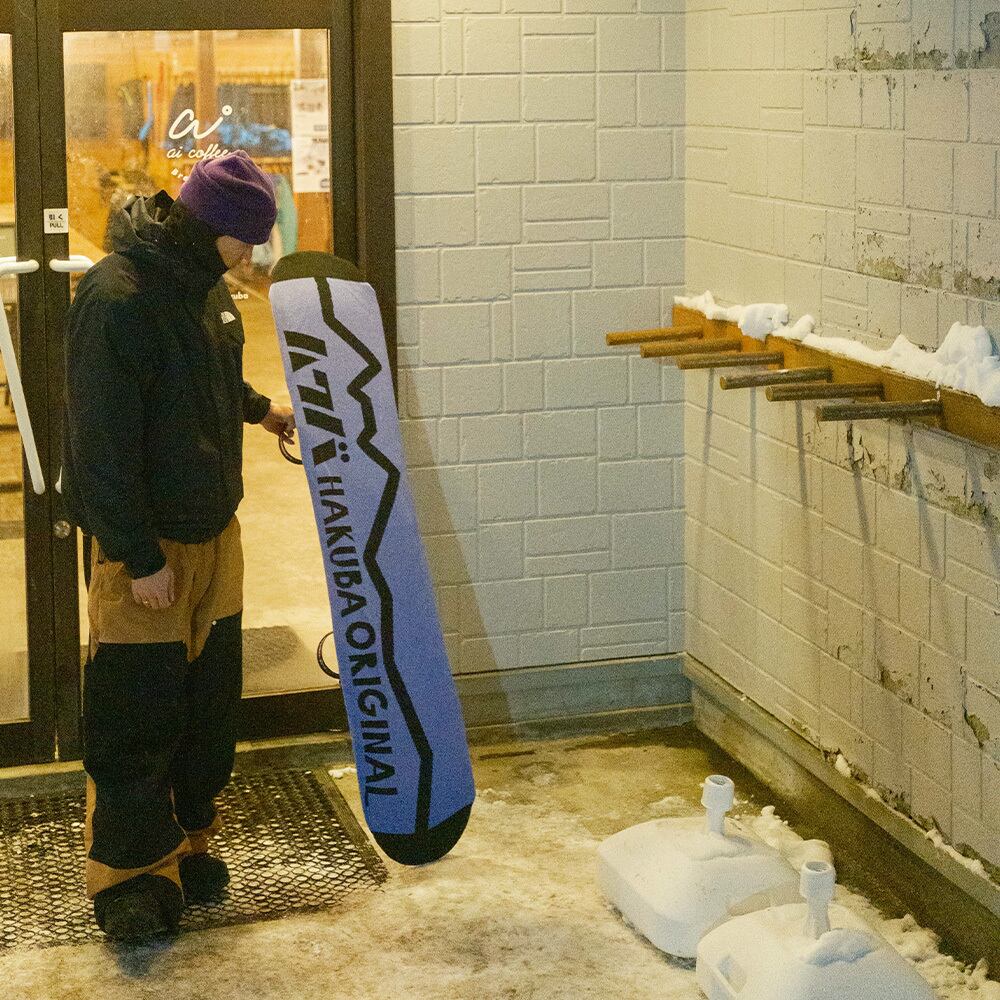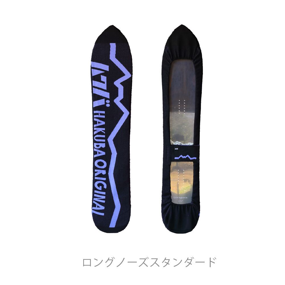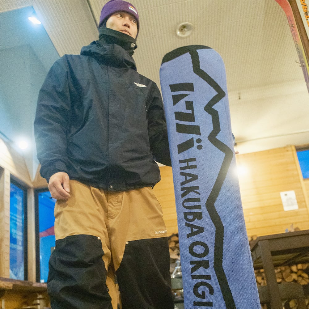 白馬三山の稜線のモチーフとHAKUBAORIGINALロゴは、大自然を自由に楽しむさまざまなスノボードスタイルにマッチします。